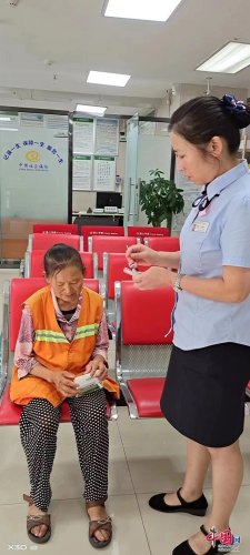 “阿姨,您到我們郵儲銀行的網(wǎng)點(diǎn)休息休息再繼續(xù)工作吧?!苯?,郵儲銀行鹽亭縣文同路中段支行工作人員見一位環(huán)衛(wèi)阿姨頭頂烈日、腳踏酷暑仍在戶外辛苦工作,烈日下的工作環(huán)境讓她面露疲憊、汗水濕衣,便主動邀請她進(jìn)入該網(wǎng)點(diǎn)的“郵愛驛站”休息,并給她遞上藿香正氣液和一杯水。