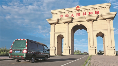 郵車駛向阿爾山口岸國門。