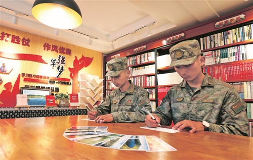 戰(zhàn)士們給親友書寫明信片。