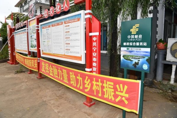 隨著擺渡移近村口,記者清晰地聽見岸邊的搗衣聲與孩童戲耍的歡笑聲,一排排房屋掩映在綠樹繁花間,忽想起“土地平曠,屋舍儼然,有良田、美池、桑竹之屬”,真有誤入桃源之感。而與這古樸閑適相得益彰的是村口隨處可見的郵政元素。