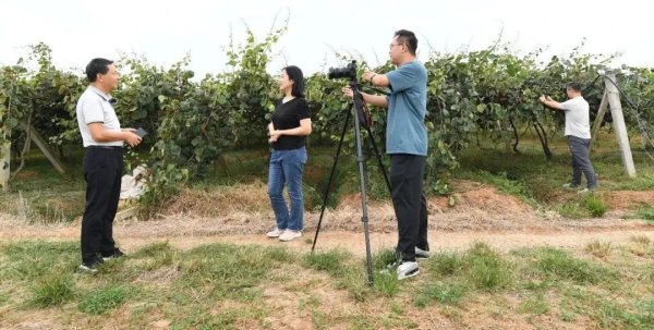 采訪組在獼猴桃果園采訪
