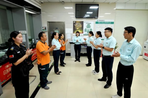 走進(jìn)蘭里支局,寬敞明亮、簡(jiǎn)潔大氣,廳內(nèi)設(shè)立了客戶等候區(qū)、VIP服務(wù)區(qū)、郵政業(yè)務(wù)區(qū)等多個(gè)功能分區(qū)?!案魑粌?yōu)秀的伙伴,大家早上好!”“好、很好、非常好、越來越好!”早上七點(diǎn)四十分,隨著晨會(huì)的開始,蘭里支局一天的工作便拉開了帷幕。