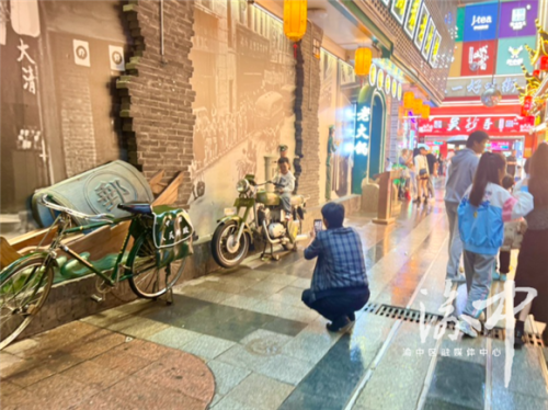 成都游客陸鳴就選擇在10月5日的下午來到這里,用感受人文氣息的方式結(jié)束“重慶游”。“雖然來過渝中多次,但重慶督郵街還是第一次來。這次也是看到有博主介紹,慕名而來?!彼阒⒆右宦放恼?,從督郵街口的郵政文物——“老牌”郵筒拍到不同時期的送信交通工具,此時的他變身一位“郵遞員”,或陪著孩子坐在扁擔(dān)上、抱著孩子坐在自行車上自拍,或讓孩子獨自坐在摩托車上為他拍,一路了解重慶郵政業(yè)的發(fā)展,也從重慶郵政業(yè)的發(fā)展中感受著這座城市的發(fā)展。“這條街很有意思,既有市井氣,又有知識學(xué),讓我們看到了蘊含在重慶小巷里的人文歷史?!?/p>