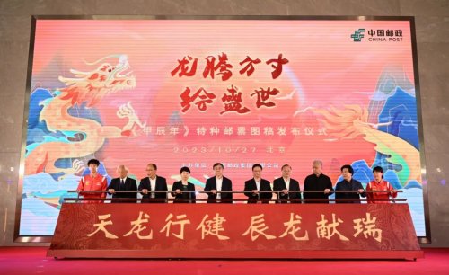 10月27日,中國(guó)郵政《甲辰年》特種郵票圖稿發(fā)布儀式在京舉行。國(guó)家郵政局副局長(zhǎng)、中華全國(guó)集郵聯(lián)合會(huì)會(huì)長(zhǎng)戴應(yīng)軍,中央港澳工作辦公室巡視員許麗,中國(guó)郵政集團(tuán)有限公司黨組書(shū)記、董事長(zhǎng)劉愛(ài)力,黨組副書(shū)記、總經(jīng)理鄭國(guó)雨,黨組成員、副總經(jīng)理康寧,觀復(fù)博物館創(chuàng)辦人、著名文化學(xué)者馬未都,中國(guó)社科院榮譽(yù)學(xué)部委員、民俗學(xué)會(huì)名譽(yù)會(huì)長(zhǎng)劉魁立,中國(guó)國(guó)家乒乓球隊(duì)運(yùn)動(dòng)員林高遠(yuǎn)、于子洋、陳幸同、錢(qián)天一等出席活動(dòng)。發(fā)布儀式上公布了《甲辰年》特種郵票圖稿并同步啟動(dòng)郵票印制。