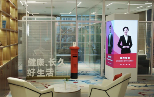 “科技感”可謂是移動體驗艙的一大亮點(diǎn)。五個體驗?zāi)K中,“管家大屏”以獨(dú)特的“數(shù)字人”形象生動展示友邦在康養(yǎng)、教育、健康及財富管理方面的強(qiáng)大服務(wù)資源和團(tuán)隊?!皵?shù)字健康”則可為客戶提供包括近紅外成像、3D結(jié)構(gòu)光成像、大數(shù)據(jù)分析等功能的智能體檢,幫助客戶即時了解個人健康狀況。“無憂養(yǎng)老”模塊,則以觸摸屏一體機(jī)的形式,系統(tǒng)呈現(xiàn)友邦人壽在教育、康養(yǎng)以及養(yǎng)老生活等方面的一站式服務(wù)資源?!爸腔劬蛹摇蹦K是最具趣味性的模塊,立體互動沙盤將體驗者帶入居家智慧養(yǎng)老迷你樣板間,沉浸式感受友邦人壽可提供的不同家庭生活場景下智能居家養(yǎng)老協(xié)調(diào)和適老化改造協(xié)調(diào)服務(wù)內(nèi)容。