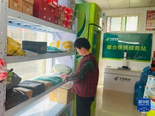 高墩營村綜合便民服務(wù)站內(nèi),負(fù)責(zé)人正在整理包裹。新華社記者李杰 攝