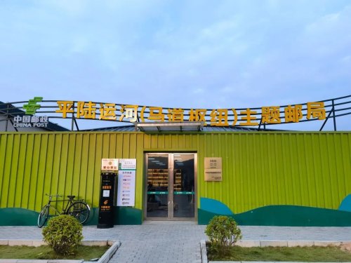 平陸運(yùn)河馬道樞紐主題郵局整體采用集裝箱的造型,特意用流水狀線條的設(shè)計(jì)凸顯郵局名,極具運(yùn)河特色,整體采用郵政綠色調(diào),門口擺放著郵筒和一輛經(jīng)典的郵政自行車,在建設(shè)園區(qū)內(nèi)顯得格外亮眼。