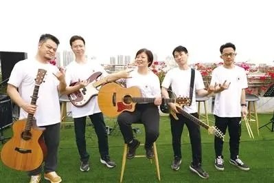 80后主音吉他手劉國輝在樂隊(duì)成立之初就加入了,那時(shí)的他還是一名投遞員?!白x大學(xué)時(shí)跟同學(xué)一起玩過吉他,畢業(yè)后大家奔赴各地就業(yè),再難聚在一起玩音樂,很遺憾!”劉國輝說,公司組建樂隊(duì),讓他找回了讀書時(shí)代的記憶,工余生活有了新的寄托。