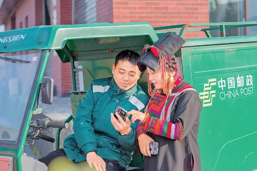 把方便路鋪進“彝家新寨”。在層層疊疊、錯落有致的“彝家新寨”里,彎彎曲曲的聯(lián)戶路上,總能看到郵政投遞員的身影。他們一大早就開始忙碌,喊著熟悉的名字:“莫舒、阿依,快出來領包裹啦!”為了第一時間將郵件送到彝族同胞手中,峨邊縣分公司結合彝村實際,采用三輪車運到大路,再由投遞員背、抱、扛到戶的投遞模式,將一件件日用品和生產用具投送到村民手中。2023年,該分公司為兩個村的村民投遞郵件近8000件。