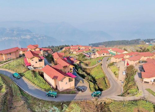 郵車駛入錯落有致的“彝家新寨”?!踅昃啊z