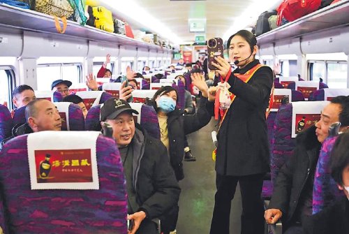 對于江蘇、上海及周邊地區(qū)的數(shù)以千計的務(wù)工人員來說,此次G9285次列車是一趟特別的列車。舒城縣郵政分公司連續(xù)第6年舉辦“春運郵情情暖江淮”活動,聯(lián)合縣公共就業(yè)和人才服務(wù)中心、皖浦皖籍農(nóng)民工工作服務(wù)站等單位,包下一列高鐵專列,始發(fā)站為上海站,途經(jīng)昆山、蘇州、無錫,免費帶著862名在長三角地區(qū)務(wù)工的老鄉(xiāng)直達舒城。
