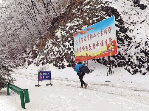 2月4日,地處鄂西北邊陲的湖北口鄉(xiāng)厚雪積壓,地面結(jié)冰,湖北省十堰市鄖西縣郵政分公司湖北口支局投遞員李善記堅(jiān)持徒步進(jìn)村為村民投遞郵件?!踔軙澡ぁ⊥蹑獭z影報(bào)道