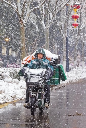 2月4日,湖北省武漢市氣象臺(tái)發(fā)布道路結(jié)冰橙色預(yù)警,全城一片銀裝素裹。全市159個(gè)投遞點(diǎn)(含郵政支局)全部正常對(duì)外服務(wù),郵政快遞小哥頂風(fēng)冒雪堅(jiān)持投遞,成為了冬日里一道別樣的風(fēng)景?!跣し肌∨朔摇埍蟆z影報(bào)道