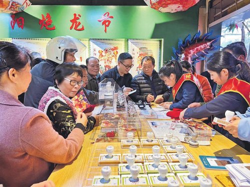 2月8—24日,由四川省德陽(yáng)市人民政府主辦的“祈福文廟·龍騰德陽(yáng)”甲辰年德陽(yáng)文廟新春游園會(huì)在文廟商圈舉辦。德陽(yáng)市郵政分公司以德陽(yáng)特色文創(chuàng)產(chǎn)品為依托,在文廟景區(qū)內(nèi)開(kāi)設(shè)“德陽(yáng)文廟主題郵局”,為廣大市民與游客提供郵政特色明信片、集章冊(cè)、文創(chuàng)產(chǎn)品銷售與集章集戳、游園指南等全方位服務(wù)。德陽(yáng)郵政特別為此次游園活動(dòng)制作主題紀(jì)念封6000枚,在現(xiàn)場(chǎng)放置了郵筒,讓市民與游客將新春祝福寄往全國(guó)各地。□王一 俞穎 攝影報(bào)道