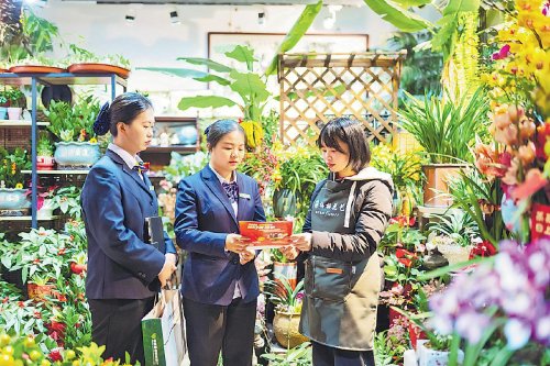 郵儲銀行福建省莆田市分行工作人員向鮮花商戶推介金融產(chǎn)品,根據(jù)商戶的生產(chǎn)經(jīng)營情況,為他們制定個性化融資服務(wù)方案?!觞S益強(qiáng) 攝