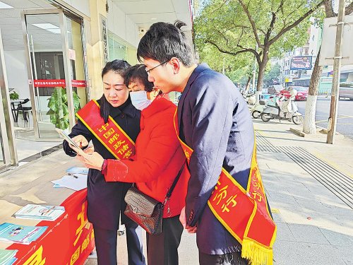 郵儲銀行江西省贛州市分行工作人員向廣大居民講解電信詐騙防范、非法金融活動對社會的危害等知識,提醒社會公眾增強(qiáng)辨別能力和防騙意識,堅決抵制“高額回報”的誘惑。 □楊蘭 攝