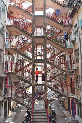 南寧市郵政分公司投遞員在鴛鴦樓投送郵件?!踔袊]政報記者 賈紅偉 攝