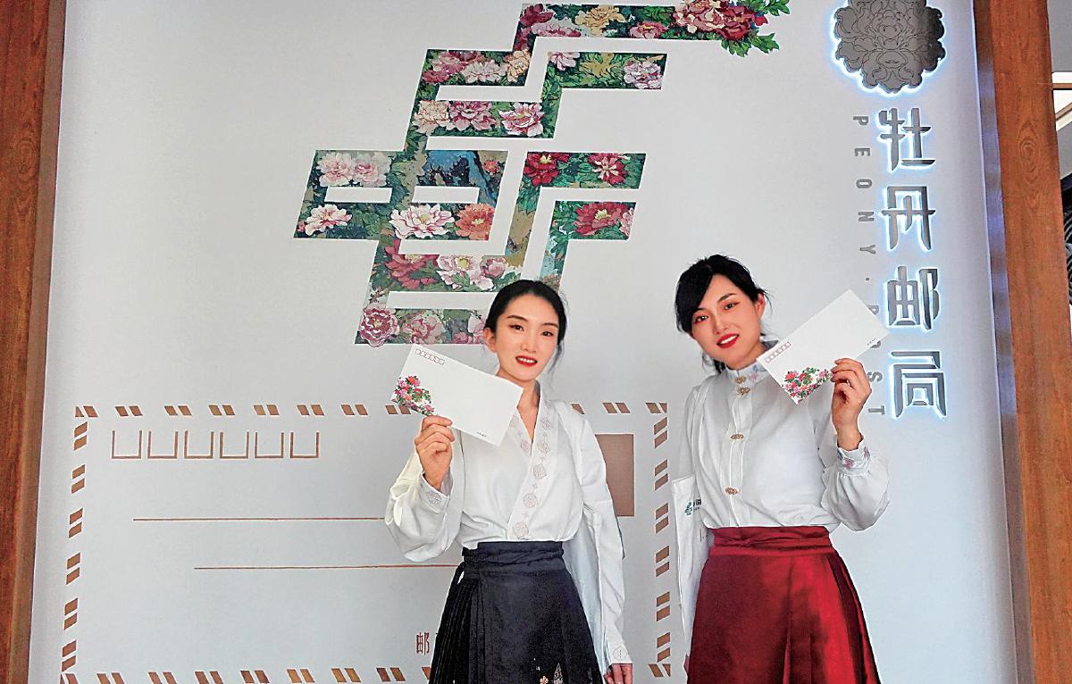 穿漢服、賞牡丹成為牡丹郵局打卡潮流。