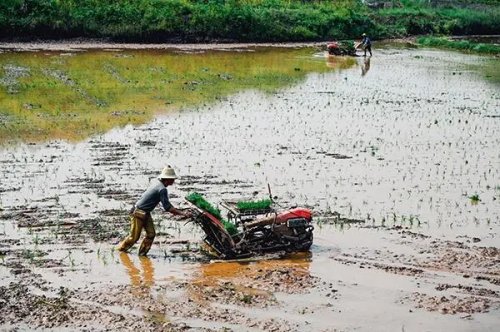 農(nóng)戶利用插秧機(jī)進(jìn)行耕種。郵儲銀行重慶分行供圖