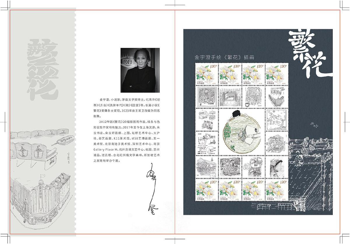 上海市分公司集郵與文化傳媒部集郵業(yè)務(wù)室項目負責(zé)人賈寅承擔(dān)著與金宇澄對接設(shè)計的工作。在數(shù)次的線上和線下聯(lián)系中,他感觸良多:“這次整體的溝通過程,讓我感受到了劇中經(jīng)常提到的‘不響’的處事態(tài)度?!睋?jù)賈寅回憶,金宇澄在雙方明確意向當(dāng)天,就對所有手繪插圖稿進行整理,精心挑選出反映小說中經(jīng)典瞬間和場景的13幅插畫,隔天就提供給上海市分公司進行設(shè)計制作,這種目標(biāo)清晰、悶聲做事、執(zhí)行高效的態(tài)度讓他印象深刻。對于圖稿的細節(jié),無論是字體還是顏色,金宇澄都一一斟酌、反復(fù)推敲,“‘繁花’二字與郵票邊框處銜接應(yīng)該是截平,而不是圓筆”“房子和屋頂是個標(biāo)志,盡量露出來”“郵票上的展現(xiàn)應(yīng)該比書本更精確”……賈寅感慨道:“從這數(shù)次溝通中,我感受到了他們這代人的郵票情懷,他們是真的懂集郵。我也感受到了他們高超的文化素養(yǎng)和審美水平?!?/p>