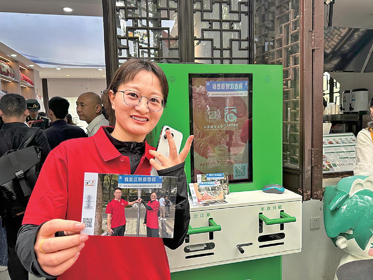 校慶現場,江西財經大學學生在小程序下單,現場打印明信片?! 趿栊墨h 攝