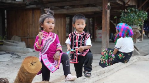 一進(jìn)村,記者就看到一排排整齊的桿欄式建筑,極具民族風(fēng)情。拉祜族村民身穿黑色打底、點(diǎn)綴彩線和色布的民族服飾,在自家院子里悠閑地喝著茶,小朋友們?cè)诎⒉缄憦V場上追逐玩耍。在廣場旁邊葫蘆型的感恩池畔,有一個(gè)石榴形狀標(biāo)志牌,寓意各民族像石榴籽一樣緊緊抱在一起,牌子上“不忘初心跟黨走 牢記使命興邊疆”的紅色大字格外耀眼。
