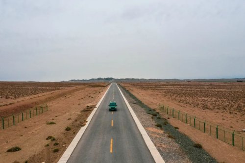 “山到頭,水到頭,路到頭,人到頭?!濒[爾吉瑪駕駛郵車,行駛兩個多小時,來到最遠的抵邊村明水村。這里位于大漠深處,人跡罕至,近百公里范圍內看不到一棵自然生長的樹,除了零星生長的麻黃草,幾乎沒有生命跡象。這里雖叫明水,卻沒有水。