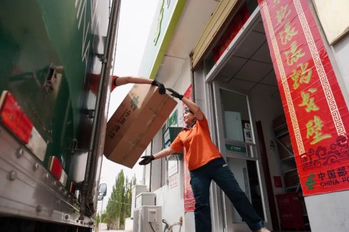 工人邊取件邊說:“只要我們把地址寫成郵件寄存點,郵車就能給我們送過來,我們又能愉快地買買買了?!?/p>