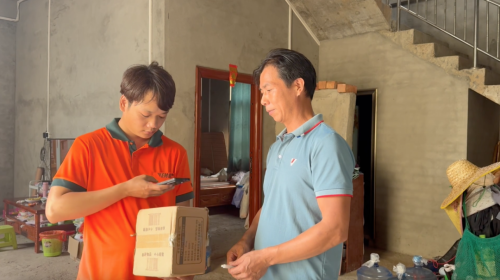 采訪間,正趕上油隘村板新屯村民張美和來取件,她還順便買了點(diǎn)釀酒的原料。經(jīng)常網(wǎng)購的她說郵政包裹以前是送到鎮(zhèn)上,需要騎摩托車去取,現(xiàn)在直接從家里過來,幾分鐘就拿到了,很方便。