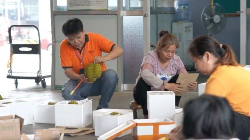 眼前,郵政工作人員正忙著將一個(gè)個(gè)新鮮的榴蓮打包。據(jù)這里的負(fù)責(zé)人潘新杰介紹,憑祥郵政倉是2017年設(shè)立的,成為當(dāng)?shù)剜]政服務(wù)東南亞水果寄遞體系中的關(guān)鍵一環(huán)。通過“引商入倉”“電商造包”等增值服務(wù)舉措的相繼實(shí)施,該倉已從最初單一的收寄服務(wù),逐步拓展至集倉儲、銷售、打包、寄遞為一體的全環(huán)節(jié)服務(wù),不僅提升了郵政服務(wù)的綜合效能,更在扶持當(dāng)?shù)仉娚炭蛻舴矫姘l(fā)揮了積極作用。