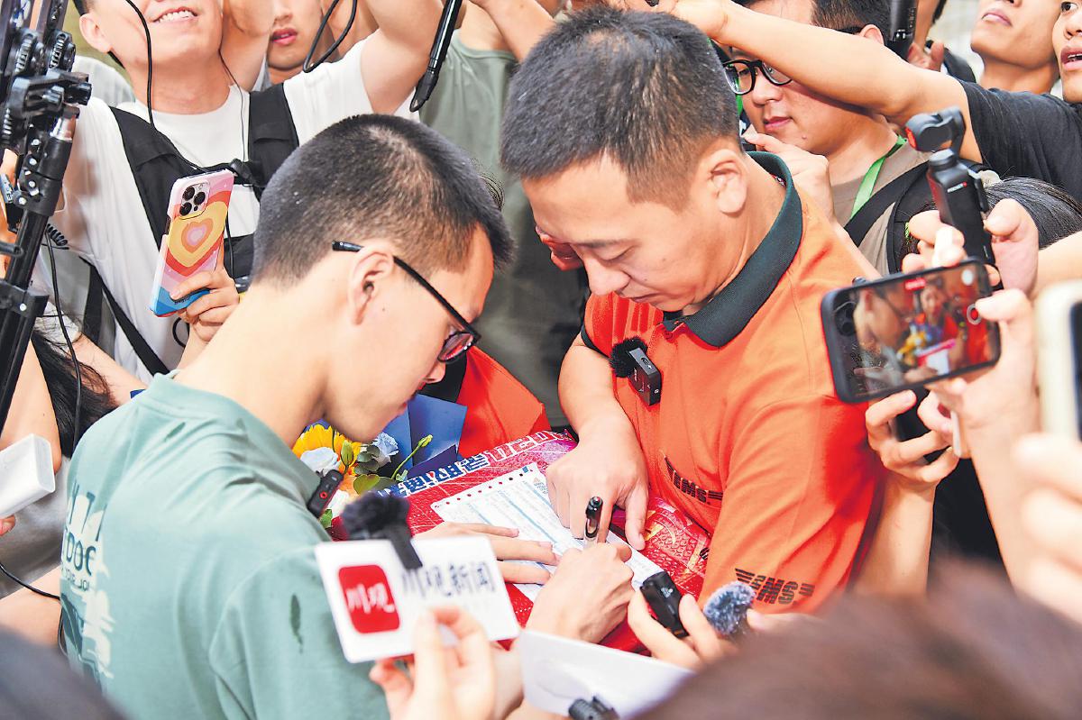 7月8日9時30分,四川省首份高考錄取通知書從四川大學(xué)錄取現(xiàn)場發(fā)出,投遞至考生指定地址(上圖)。當(dāng)天18時45分,北京市第一封普招高考錄取通知書在北京語言大學(xué)現(xiàn)場打印,北京郵政特別選派了全國五一勞動獎?wù)芦@得者史春華承擔(dān)投遞任務(wù)(下圖)。四川、北京首封高考錄取通知書的安全送達,標(biāo)志著中國郵政2024年高考錄取通知書寄遞工作正式拉開帷幕。