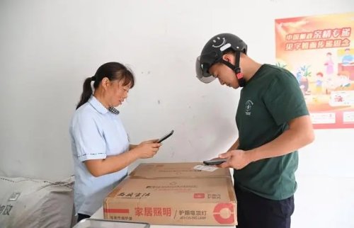在郵政營(yíng)業(yè)員整理快遞的間隙,不時(shí)有村民來取快遞。羅牛村村民麻財(cái)寶收到快遞抵達(dá)鄉(xiāng)鎮(zhèn)的短信后,便騎著電動(dòng)車來免費(fèi)領(lǐng)取快遞。