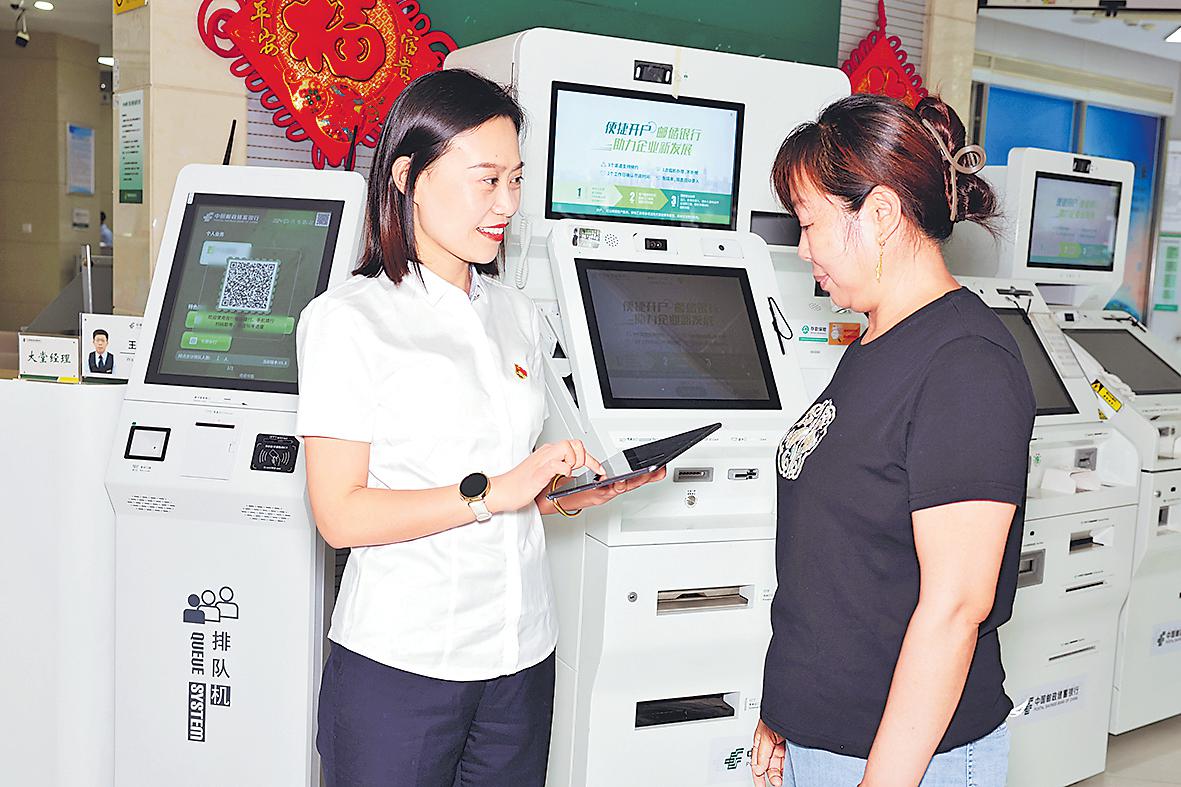 崔靜靜向客戶(hù)介紹信貸業(yè)務(wù)。