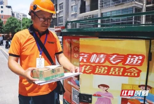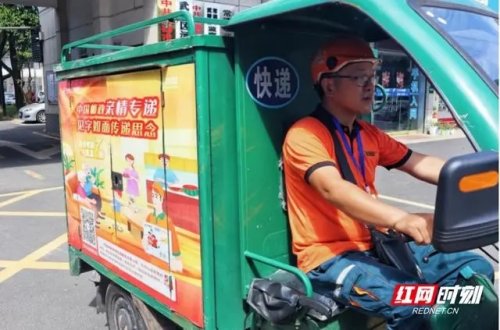 7月19日,早上八點(diǎn),戶(hù)外溫度已超過(guò)30℃,在常德市西區(qū)攬投部,快遞員何中清已經(jīng)忙著卸貨、分揀、掃描和裝車(chē)了,不長(zhǎng)的時(shí)間汗水便將工作服打濕。何中清是該網(wǎng)點(diǎn)資歷最老的快遞員,從事郵政快遞行業(yè)已有十六年時(shí)間。九點(diǎn),何中清駕駛著三輪車(chē),帶上公司配備的防暑裝備,開(kāi)啟了他一天的“City Walk”。
