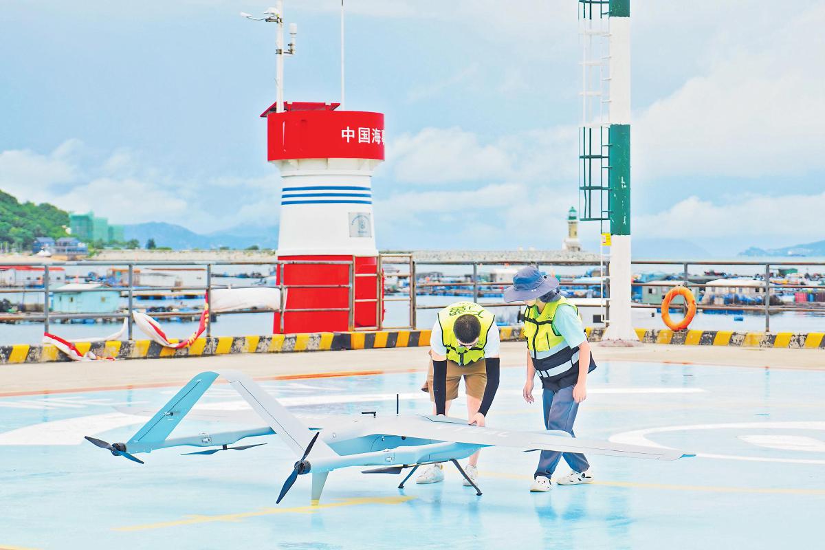 7月30日,廣東首條海島無(wú)人機(jī)郵路開(kāi)通。10時(shí)40分,無(wú)人機(jī)從珠海市唐家港公共物流基地起飛,半小時(shí)后到達(dá)距離珠海市區(qū)30公里的桂山島。據(jù)介紹,過(guò)去裝載桂山島郵件的貨船要中午12點(diǎn)前后到達(dá)桂山島,郵件下午才能投遞。無(wú)人機(jī)郵路開(kāi)通后,投遞員上午就能完成郵件投遞。珠海郵政將緊抓低空經(jīng)濟(jì)發(fā)展機(jī)遇,打造海島物流體系新格局,為海島軍民提供更加便捷、高效的用郵服務(wù)。圖為無(wú)人機(jī)??吭诠鹕綅u停機(jī)坪的指定位置。
