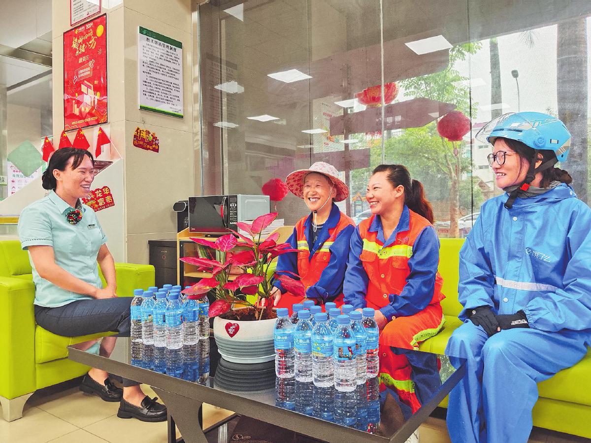 進入暑期以來,云南省德宏傣族景頗族自治州迎來高溫和降雨天氣,許多戶外勞動者頂著烈日、迎著風雨堅守在工作崗位上。德宏州郵政分公司積極履行社會責任,充分發(fā)揮“郵愛驛站”的作用,邀請清潔工、外賣員、快遞員等戶外勞動者到驛站納涼、休息,為戶外勞動者送上關愛。同時,驛站工作人員還主動開展金融知識宣傳,為戶外勞動者普及金融知識和防詐知識,受到戶外勞動者的歡迎。