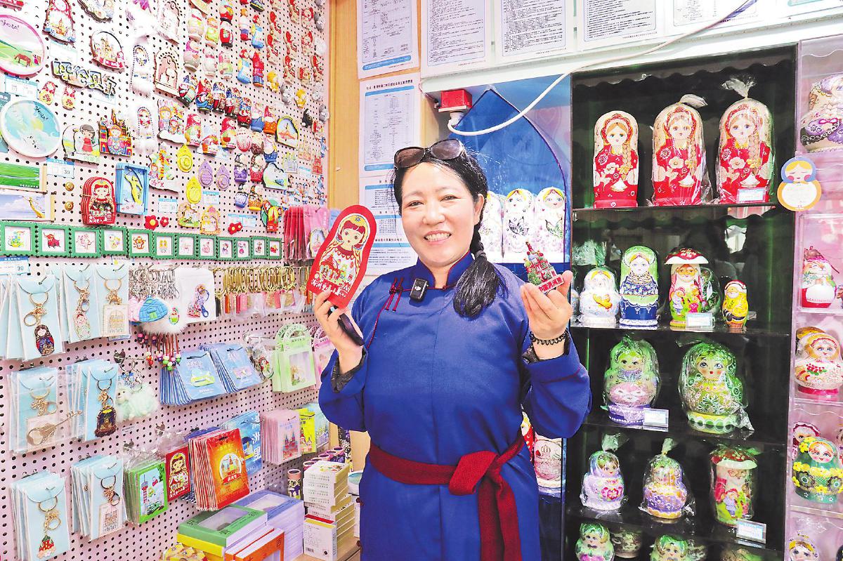 “國門邊居然還有郵局,太神奇了!快幫我拍張照!”在國門景區(qū)的入口處,占地200多平方米的滿洲里國門主題郵局吸引了不少游客。跟隨游客的腳步進(jìn)入主題郵局,分布有序的各個(gè)功能區(qū)都擠滿了人?!斑@是我們的爆款——國門冰箱貼,琺瑯工藝,火車還可以自由活動(dòng)……”記者看到,沒等郵局工作人員介紹完,幾位游客已經(jīng)快速買下好幾樣文創(chuàng)產(chǎn)品。國門主題郵局負(fù)責(zé)人項(xiàng)欣介紹說:“我們主題郵局里有郵品、文創(chuàng)產(chǎn)品、特色食品等500多種,以國門為主題的文創(chuàng)產(chǎn)品和鄂溫克族手工藝品都非常受游客喜愛?!?/p>