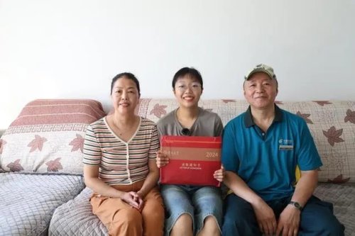 “女兒,恭喜你!你的吉林大學(xué)錄取通知書到了,請簽收!”在驗證過準(zhǔn)考證和身份證件后,呂啟光將吉林大學(xué)的高考錄取通知書鄭重地遞交到自己的女兒呂喆手中。