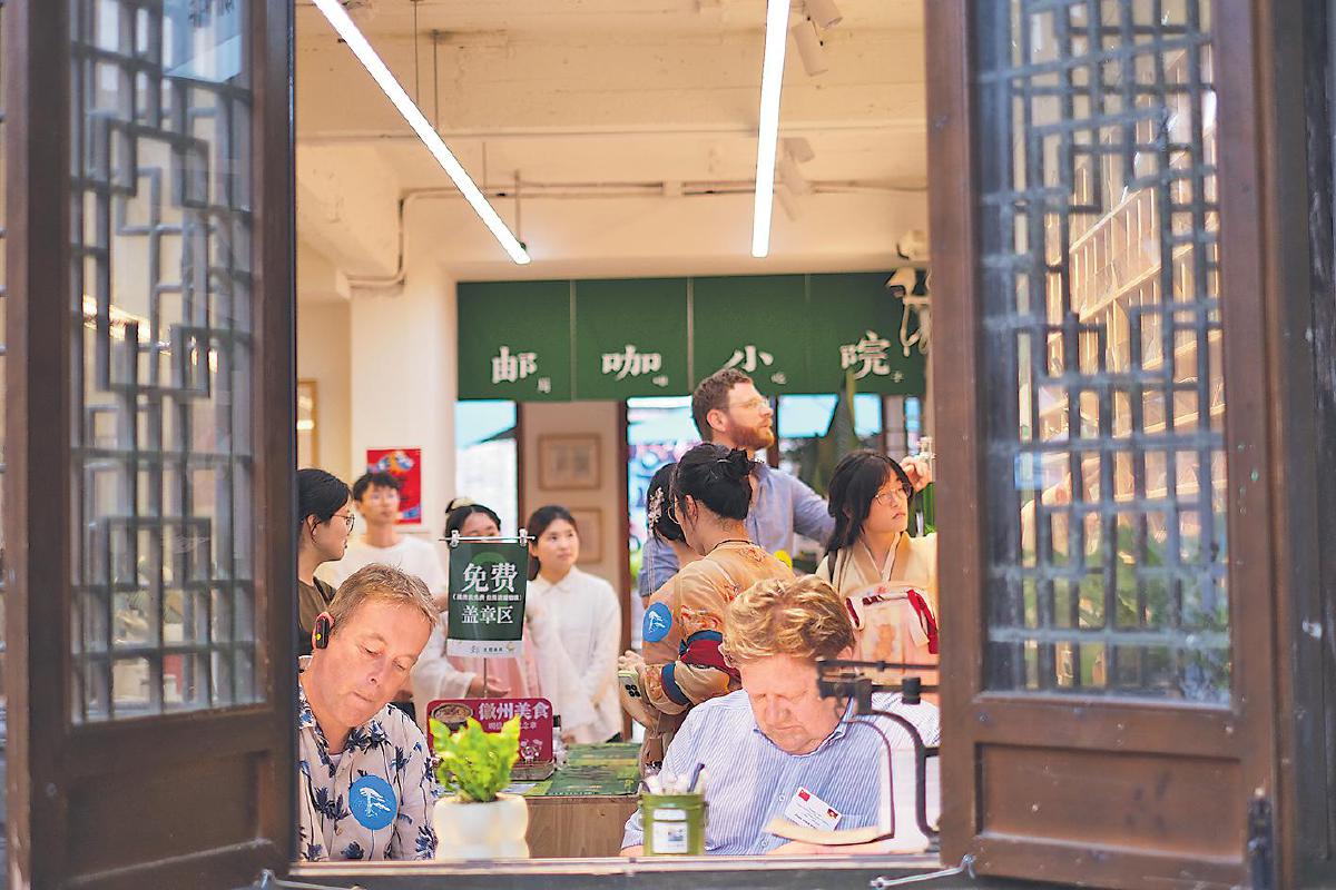 “進(jìn)來后一下子感到很驚艷,感覺超級(jí)棒,非常適合拍照。來宏村一定要到宏村主題郵局打卡?!?月1日,從廣東省來宏村旅游的王女士在郵局內(nèi)點(diǎn)了一杯冰拿鐵,邊喝邊說。為助力“大黃山”文旅發(fā)展,充分滿足游客的個(gè)性化需求,黃山市郵政分公司堅(jiān)持文旅郵融合,將景區(qū)的優(yōu)質(zhì)景觀和客流資源與郵政的“物流+電商+金融+信息”資源有機(jī)融合,把宏村主題郵局打造成為“郵政服務(wù)+文創(chuàng)體驗(yàn)+休閑文旅”的特色服務(wù)場(chǎng)所和“傳播文化、品味生活”的徽州文化窗口。今年二季度以來,宏村主題郵局營(yíng)業(yè)額超65萬元,同比增長(zhǎng)42%。