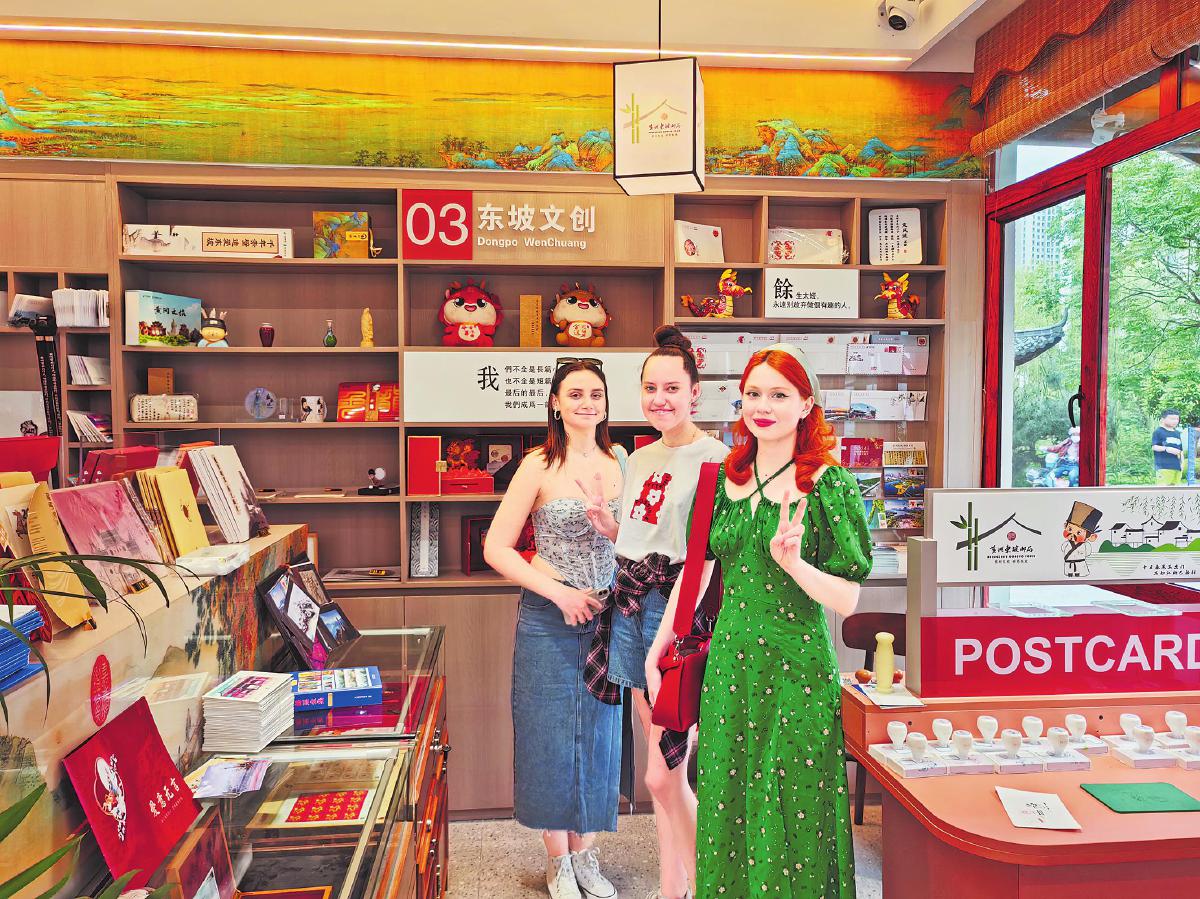 8月14日,“一帶一路”項目建設(shè)合作跨國圓桌會組委會原秘書長邢軍、部分外國友人和機構(gòu)代表參觀訪問湖北省黃岡市黃州區(qū),黃州東坡郵局被列為參觀重點之一。走進東坡郵局,考察團成員先后參觀了東坡紀念郵票展示區(qū)、東坡文化主題文創(chuàng)展示區(qū)、東坡詩詞圖書展示區(qū)、書寫集戳區(qū)、咖啡飲品區(qū)、直播帶貨區(qū)、婚慶禮品區(qū)。大家駐足欣賞墻面上東坡與黃州、東坡與中國、東坡與世界文化故事的詩詞書畫,興趣極濃地挑選、翻看各種精美的文創(chuàng)產(chǎn)品,詢問郵品開發(fā)情況,并相繼購買,還蓋上東坡郵局紀念郵戳。圖為漂亮的俄羅斯小姐姐在東坡文創(chuàng)區(qū)拍照打卡。