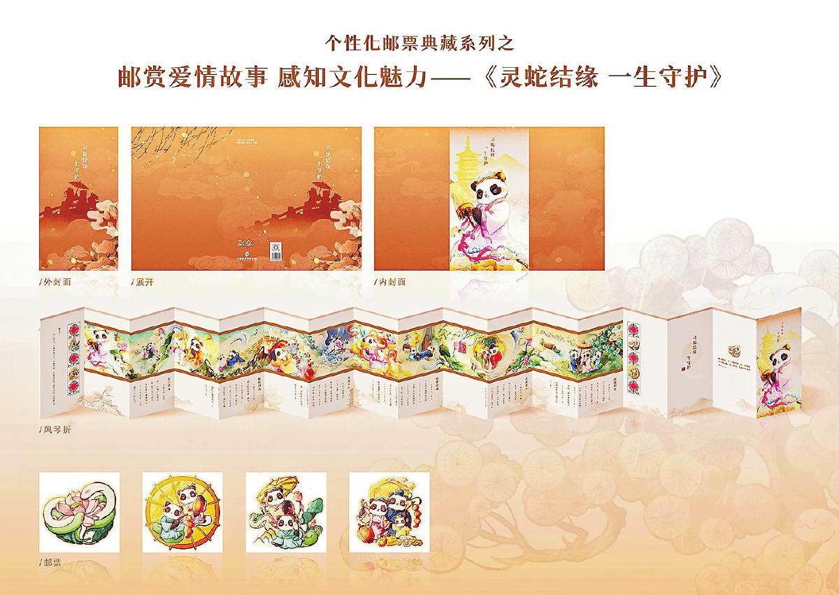近日,國(guó)產(chǎn)動(dòng)畫電影《白蛇·浮生》熱映,喚起了人們關(guān)于白蛇神話故事的美好回憶。圍繞《白蛇傳》這一國(guó)人家喻戶曉的經(jīng)典愛(ài)情故事,中國(guó)集郵繼續(xù)攜手原創(chuàng)IP形象“漢服熊貓”開發(fā)郵品,創(chuàng)新推出“白蛇傳”主題個(gè)性化郵票典藏風(fēng)琴折——《靈蛇結(jié)緣 一生守護(hù)》,以郵為媒,傳承經(jīng)典。