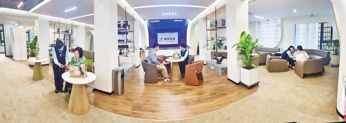 阜陽(yáng)市分公司桂花苑支局財(cái)富中心員工在幽雅的環(huán)境中為客戶提供專業(yè)服務(wù)?!跣炖住z