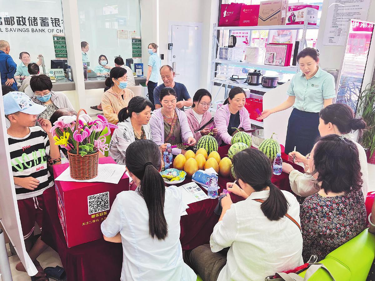 “大家掃這個(gè)碼,就可以進(jìn)團(tuán)購(gòu)群參加活動(dòng)!”8月22日,江蘇省常州市郵政分公司薛家支局啟動(dòng)“萬(wàn)點(diǎn)同慶”郵政農(nóng)品地推活動(dòng),吸引“郵樂(lè)小店”團(tuán)購(gòu)群成員到店296人,發(fā)放金融宣傳折頁(yè)禮品券200余份,現(xiàn)場(chǎng)銷(xiāo)售“郵樂(lè)優(yōu)鮮”自提商品41單……“919”郵政農(nóng)品節(jié)期間,常州郵政提前布局,結(jié)合本地優(yōu)勢(shì)建設(shè)培育“網(wǎng)點(diǎn)助農(nóng)團(tuán)購(gòu)群”,搭載“生態(tài)金融”場(chǎng)景,豐富引流活動(dòng)方案。截至8月底,常州郵政已有73個(gè)網(wǎng)點(diǎn)成功開(kāi)展“萬(wàn)點(diǎn)同慶”活動(dòng),其中36個(gè)網(wǎng)點(diǎn)開(kāi)展活動(dòng)超過(guò)3場(chǎng)。