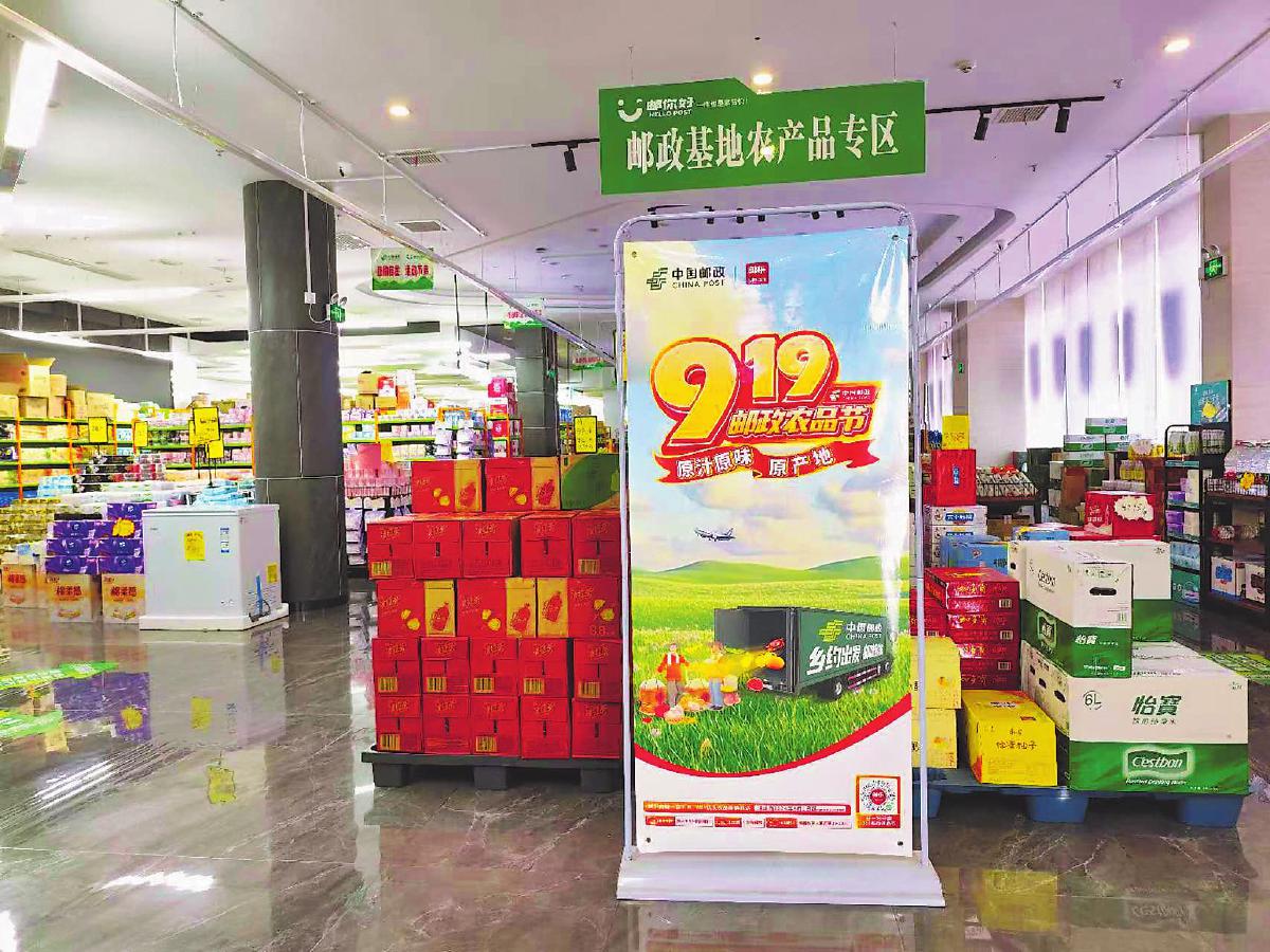 湖北郵政在當(dāng)?shù)卮笮蜕坛O(shè)置郵政基地農(nóng)產(chǎn)品專區(qū)。□何艷 攝