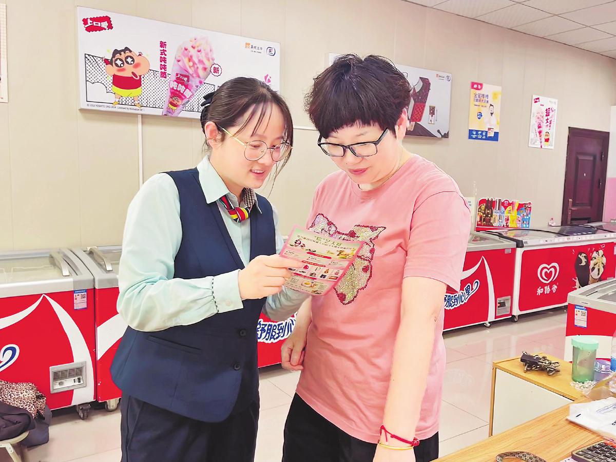 沈麗為客戶介紹理財(cái)產(chǎn)品。