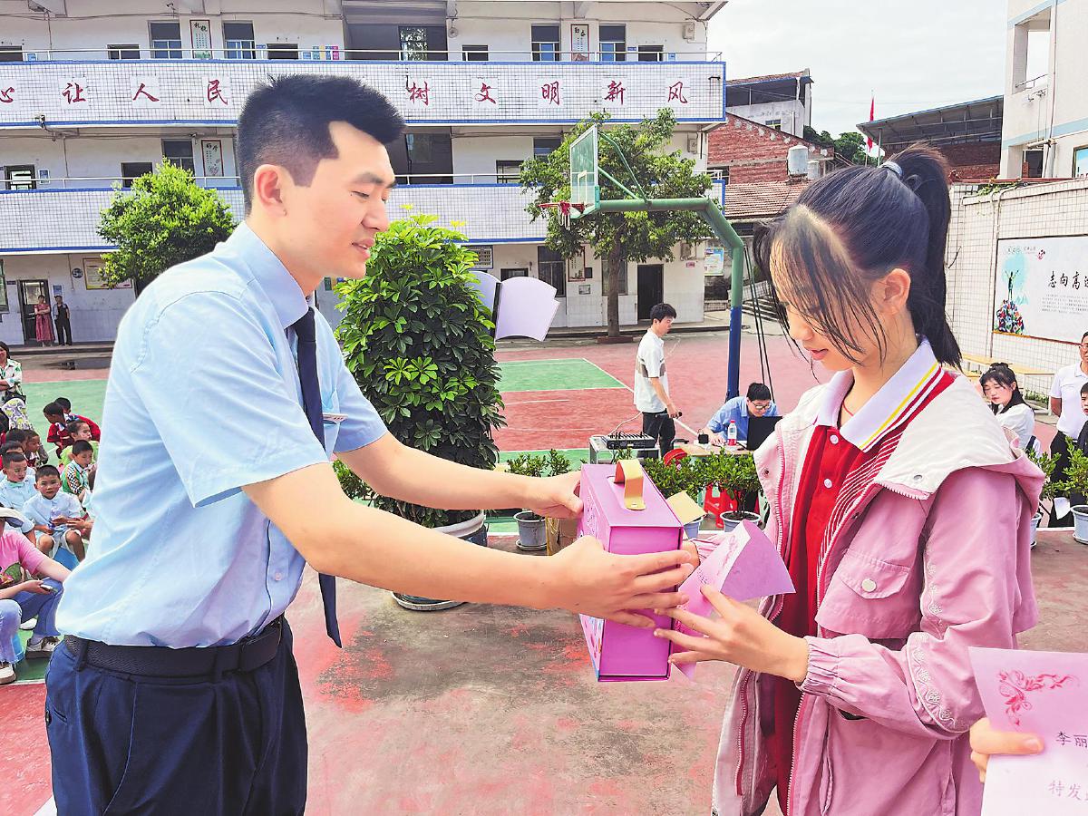 羅為幫助網(wǎng)點與學(xué)校建聯(lián),為學(xué)生捐贈學(xué)習(xí)用品。