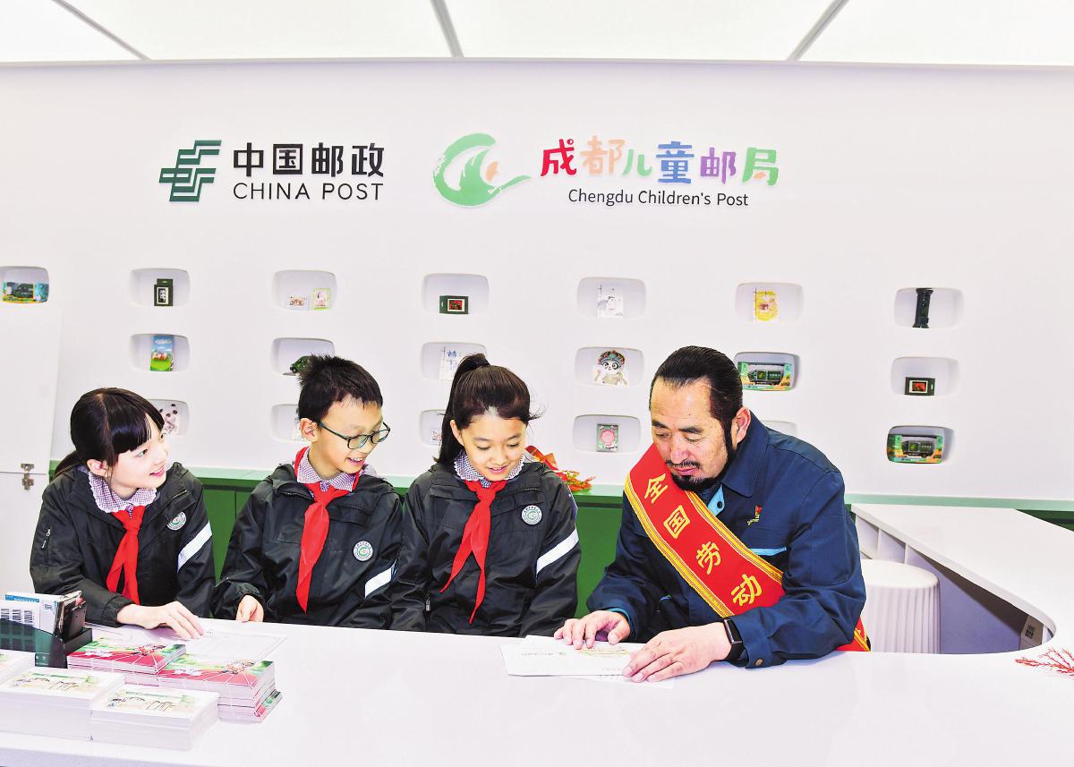 10月25日,全國(guó)首家兒童郵局——成都兒童郵局在成都市草堂小學(xué)正式啟用。該郵局由成都市郵政分公司、成都市青羊區(qū)委社會(huì)工作部、青羊區(qū)總工會(huì)、青羊區(qū)婦女聯(lián)合會(huì)、青羊區(qū)教育局共同創(chuàng)辦。郵局內(nèi)打造了勞動(dòng)教育博物館、郵政文化博物館、家書(shū)家風(fēng)博物館,旨在通過(guò)郵局大力弘揚(yáng)勞模精神、勞動(dòng)精神、工匠精神。成都兒童郵局將發(fā)揮郵政特色功能,發(fā)布“民聲”專(zhuān)用郵簡(jiǎn)、“童聲”專(zhuān)用明信片,暢通市民意見(jiàn)收集的渠道。當(dāng)天,成都兒童郵局向時(shí)代楷模、全國(guó)勞動(dòng)模范、四川省甘孜縣郵政分公司長(zhǎng)途郵車(chē)駕駛員其美多吉頒發(fā)了“名譽(yù)局長(zhǎng)”工牌。