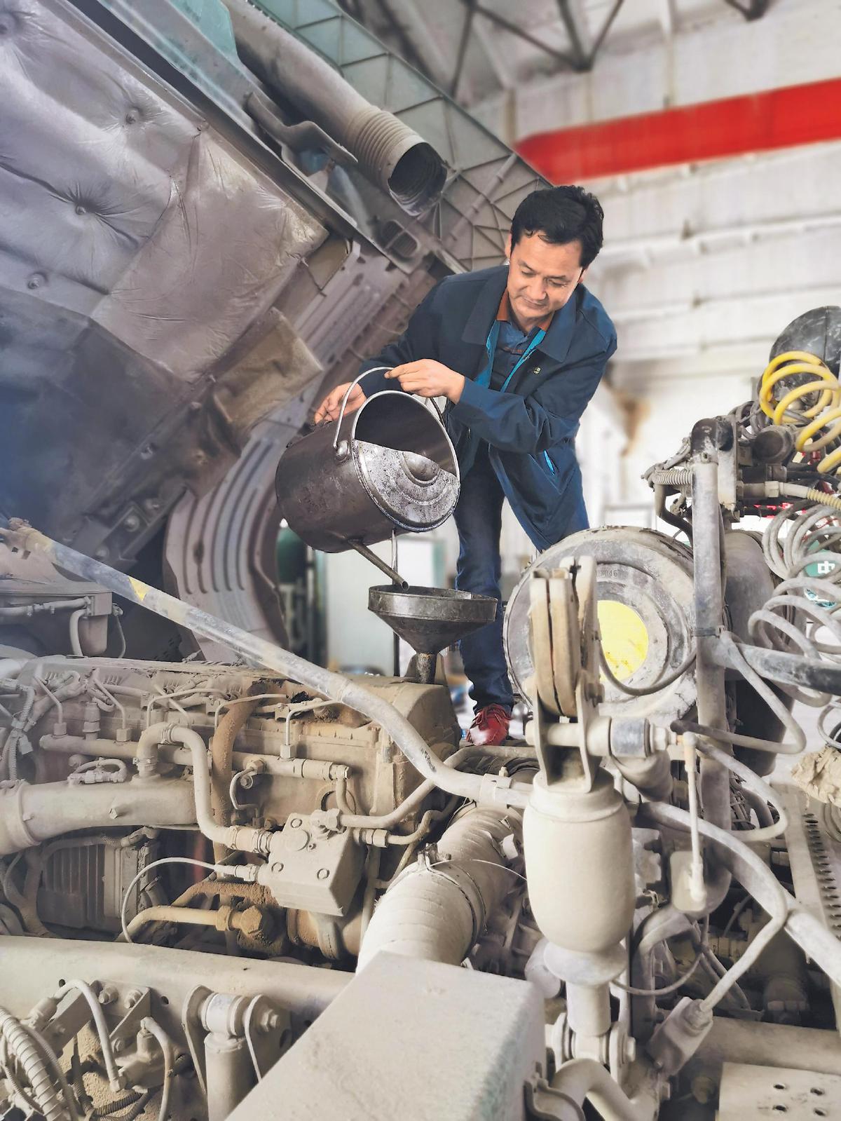 常年奮戰(zhàn)在郵政運(yùn)輸戰(zhàn)線,喬毅軍練就了過(guò)硬的業(yè)務(wù)技能。安全行駛190余萬(wàn)公里無(wú)事故的背后,是他對(duì)安全的極致追求和對(duì)工作的無(wú)限熱愛(ài)。喬毅軍在郵路上要應(yīng)對(duì)各種極端復(fù)雜的天氣,冬季低溫、冰雪等會(huì)對(duì)車輛性能帶來(lái)很大影響,只有通過(guò)細(xì)致的檢查,才能及時(shí)發(fā)現(xiàn)潛在風(fēng)險(xiǎn),從而避免在行駛過(guò)程中出現(xiàn)車輛故障或可能導(dǎo)致的事故。檢查不僅包括常見(jiàn)的輪胎、燈光、剎車系統(tǒng)等基本項(xiàng)目,還需要特別檢查皮帶緊張度、方向盤(pán)游動(dòng)間隙、制動(dòng)系統(tǒng)工況等?!靶熊嚂r(shí)要注意力集中,防止發(fā)生意外,避免不必要的損失。對(duì)汽車日常檢修項(xiàng)目要做好登記,對(duì)近期汽車出現(xiàn)的故障進(jìn)行綜合分析,認(rèn)真查找造成故障的原因,分析故障隱患出現(xiàn)的趨勢(shì),提前預(yù)防,及時(shí)做好維護(hù)保養(yǎng)工作,避免汽車在行駛途中突發(fā)故障?!闭沁@樣一絲不茍的工作態(tài)度成就了喬毅軍的優(yōu)秀業(yè)績(jī),他說(shuō):“郵車就是自己的另一個(gè)伙伴,只有細(xì)心照料和體貼入微的關(guān)愛(ài),它才不會(huì)把人扔在路上?!?/p>