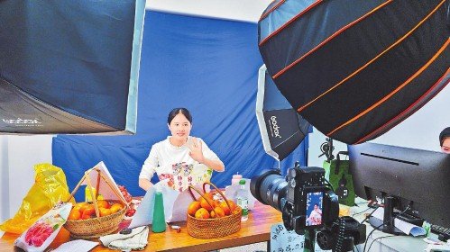 平樂郵政主播在電商直播間推介柿子系列產(chǎn)品?! 跆坪蜗z