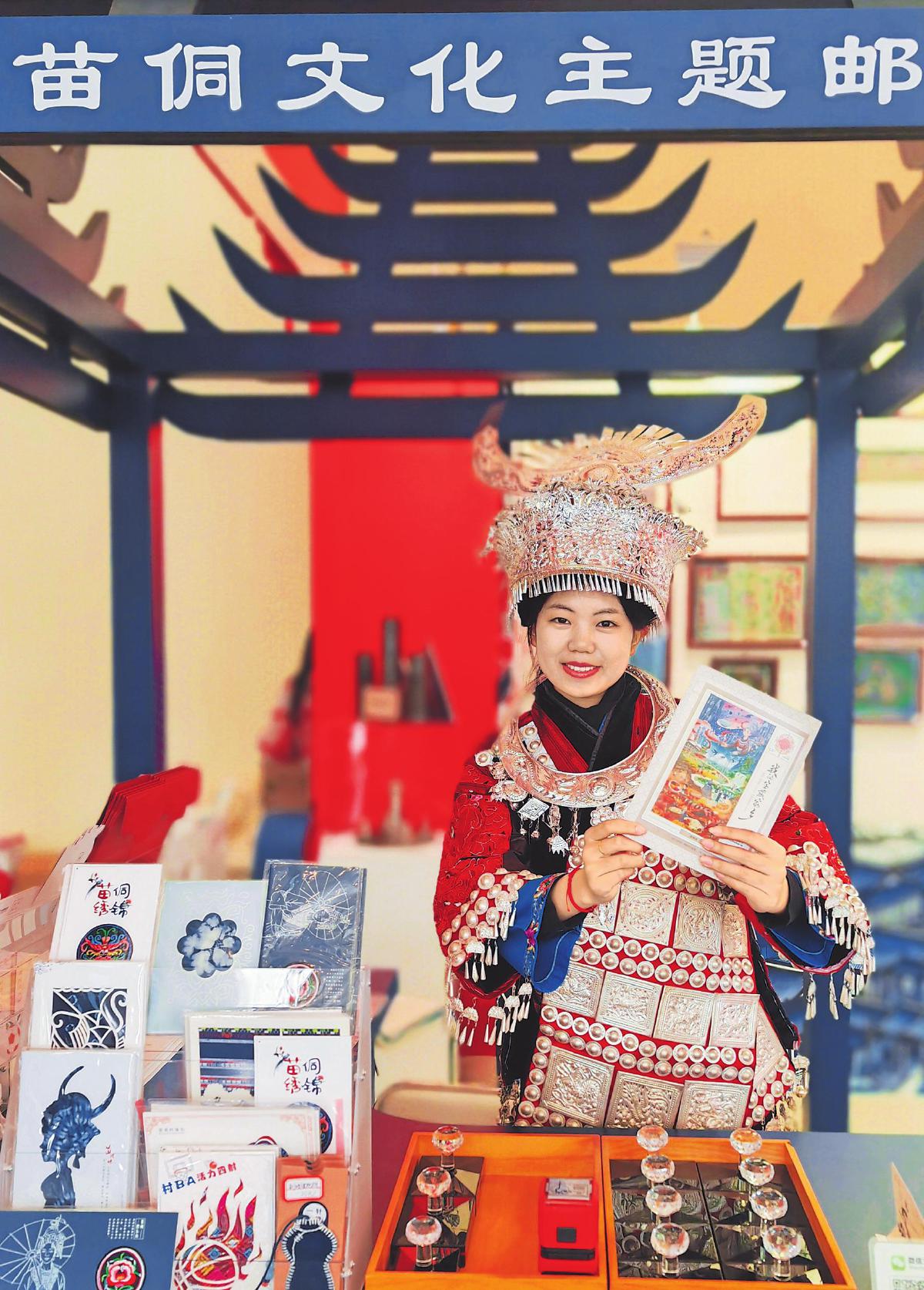 貴州郵政展臺極具少數(shù)民族特色,成為觀眾的熱門打卡地。